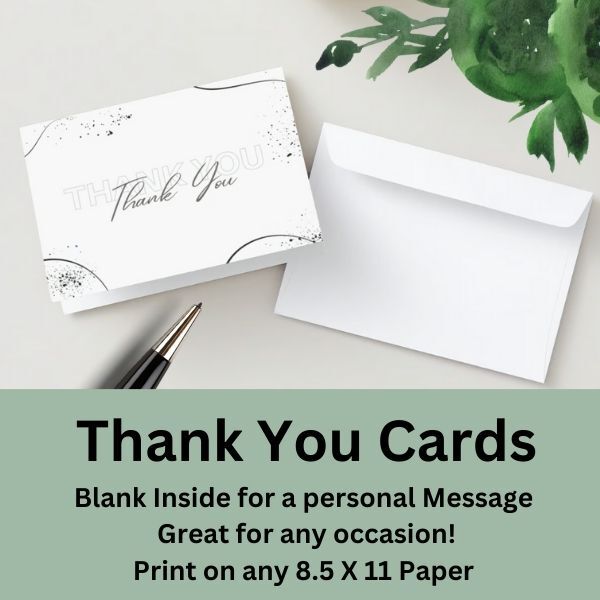 Each card template prints on a standard letter size page (8.5 x 11") and includes cut and fold lines. The final card folds to approximately 5 x 7.